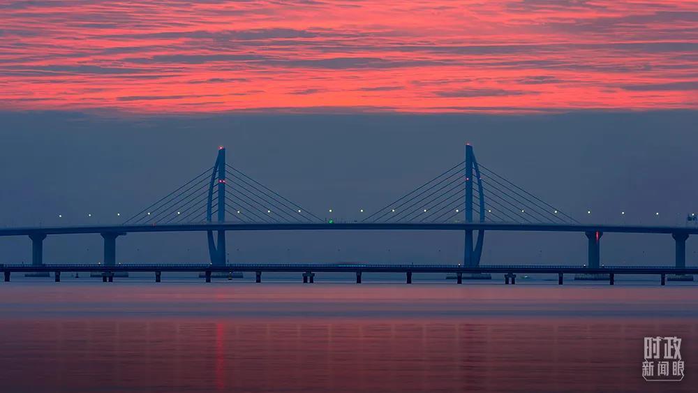 △港珠澳大橋,朝霞漫天。(圖/視覺中國)