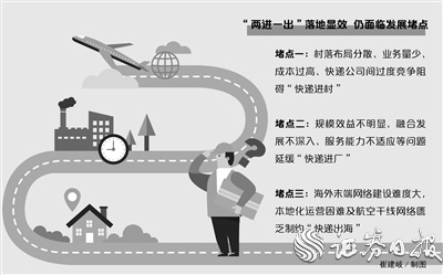 國務院辦公廳印發的《關於加快農村寄遞物流體系建設的意見》明確,到2025年,實現鄉鄉有網點、村村有服務,農產品運得出、消費品進得去。快遞進村承載着農產品上行、工業品下鄉的使命,劉江建議,“未來,可從政策扶持、資金支持和模式創新等三方面助力‘快遞進村’提速。”