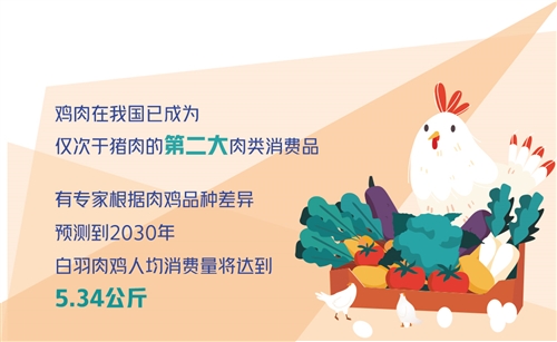 當前,雞肉在我國已成為僅次於豬肉的第二大肉類消費品。2020年,我國雞肉總產量達到1865.6萬噸,其中白羽雞肉佔比達52.4%。白羽肉雞年出欄50億隻,具有飼料轉化率高、生長速度快、生產效率高、對環境負面影響小等顯著優勢,是畜牧業乃至農業中產業化、規模化、市場化程度最高的產業。