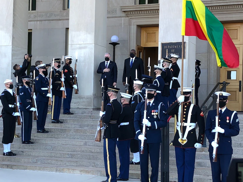奧斯汀繼續給立陶宛打氣,宣稱“今天,美國再次與立陶宛站在一起,我們將繼續共同努力,加強立陶宛的武裝力量”。