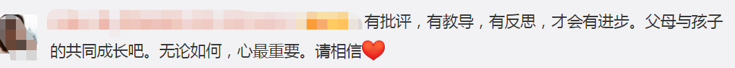 對於袁詠儀兒子的失言,有網友表示:“有批評,有教導,有反思,才會有進步。父母與孩子的共同成長吧。無論如何,心最重要。請相信。”↓