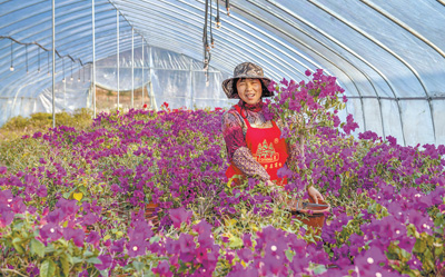 浙江台州市仙居縣引導農民發展花卉產業,促進增收。圖為在該縣一家花卉種植基地的大棚內,農民正在進行花卉管理。