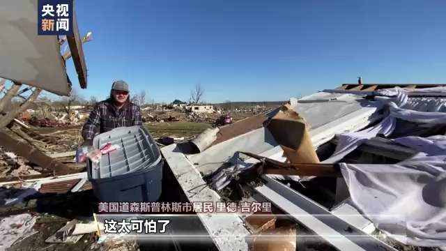 *央視記者 許弢:*你可能很難想象幾天前我所在的這片區域還是一片居民區。但是在10號晚上那場巨型龍捲風經過這裏以後,這個名叫道森斯普林斯市的75%的地方都變成了現在這個樣子。截至當地時間13日上午,這個擁有2700人的小城已經有13人死亡,約100人仍然下落不明。