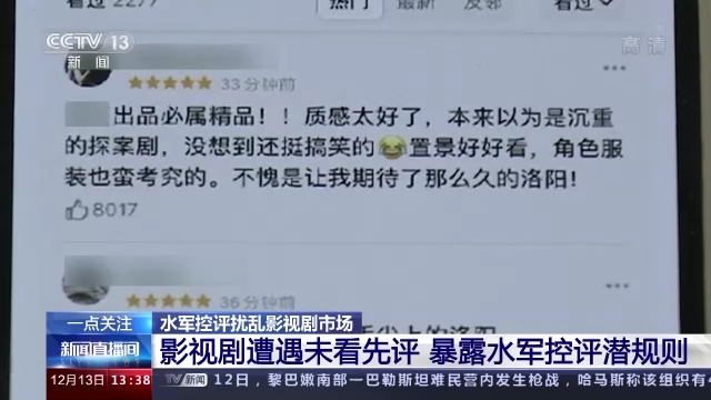 “水軍”對影視劇控評的行為,不但對網友、影視產業發展以及打分平台等各方面都會產生不良影響,甚至還有可能涉嫌違法。