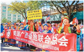 “唱山歌哎, 這邊唱來那邊和……”“壯家敬酒要唱歌,山歌聲聲伴酒喝……”近日,美東僑界“喜迎北京冬奧會暨慶祝中國日花燈大遊行”活動在紐約舉行。美國廣西僑胞聯合總會眾多鄉親加入其中,高亢嘹亮的廣西山歌再次飄蕩在紐約上空。