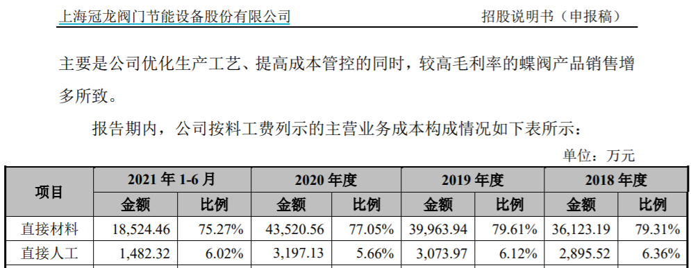 另據招股書第123頁披露的“發行人採購情況和主要供應商”,2018年到2020年的主要原材料採購金額分別為29829.81萬元、32807.61萬元和41832.59萬元;與此同時,招股書第290頁披露的“營業成本構成及變化情況”信息顯示,在2018年到2020年主營業務成本中消耗的直接材料成本金額就分別高達36123.19萬元、39963.94萬元和43520.56萬元。