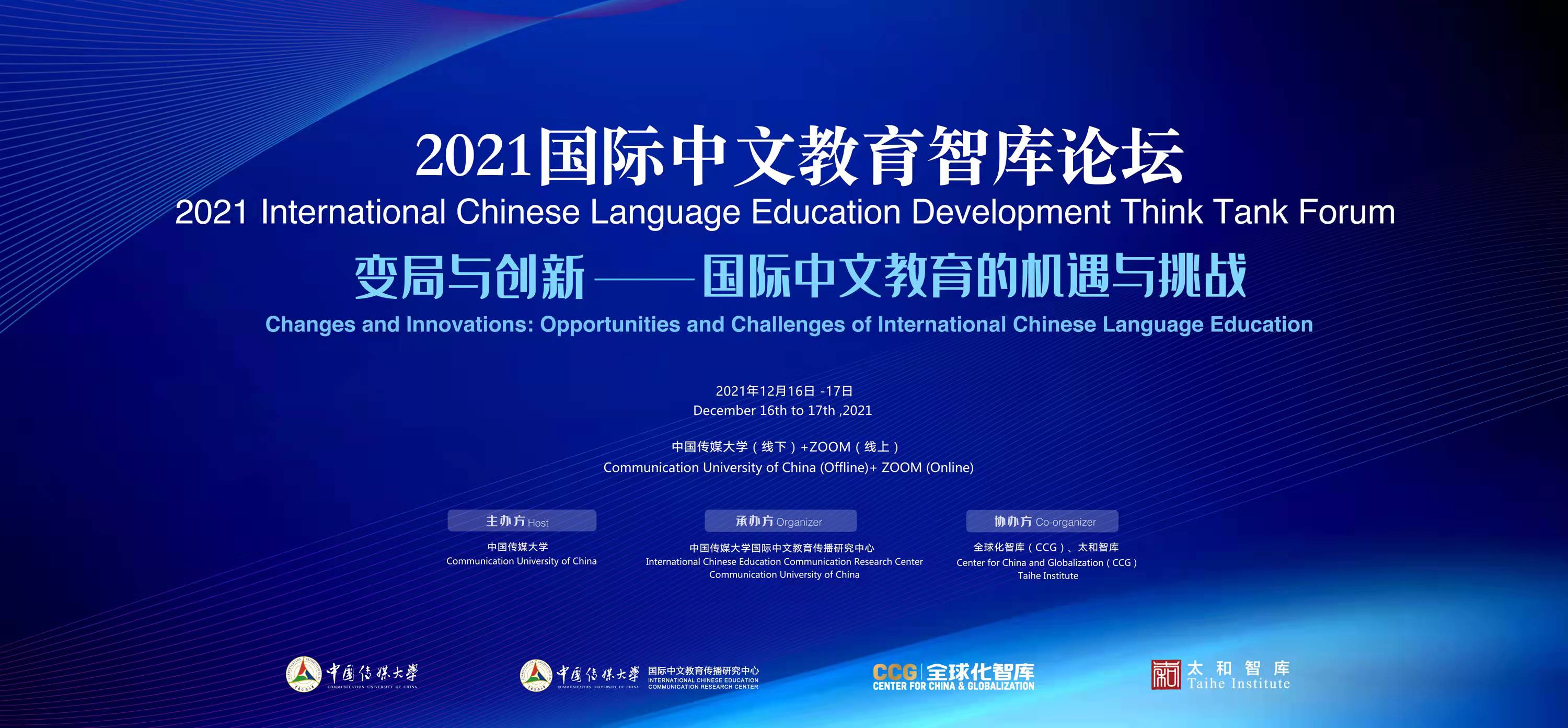 2021年12月16日,2021國際中文教育智庫論壇在京開幕,本次論壇以“變局與創新——國際中文教育的機遇與挑戰”為主題,由中國傳媒大學主辦,全球化智庫(CCG)和太和智庫聯合協辦,中國傳媒大學國際中文教育傳播研究中心承辦。