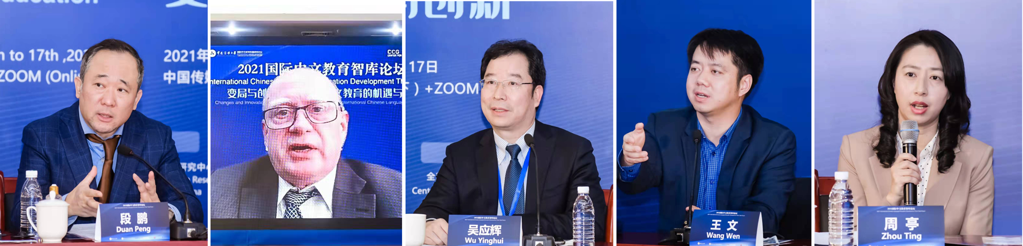 在主旨演講環節,中國傳媒大學副校長段鵬教授以《後疫情時代在線教育發展現狀、問題及對策》為題,從教育自媒體的發展現狀、現存問題以及未來路徑三個方面探討開展國際中文線上教育的價值。資深商業專欄作家、全球化智庫(CCG)副主任大衞·克萊爾(David Blair)從國外語言學習者的角度,談論了學習中文的困難,中文在海外的學習現狀以及中文與中國文化傳播的關係。北京語言大學漢語國際教育研究院(教育部人文社科重點研究基地)院長、基地主任、吳應輝教授以《大變局下全球中文教育展望》為題,同與會嘉賓分享了他關於國際中文教育發展機遇,國際中文教育的定位和推廣策略等方面的觀點。中國人民大學重陽金融研究院執行院長王文分享了研究院近期發佈的幾份報告,從智庫的角度探討了如何能夠提升國際中文教育傳播能力,向世界講述一個完整中國形象。中國傳媒大學政府與公共事務學院副院長周亭教授主持主旨發言並對嘉賓的發言進行了點評。