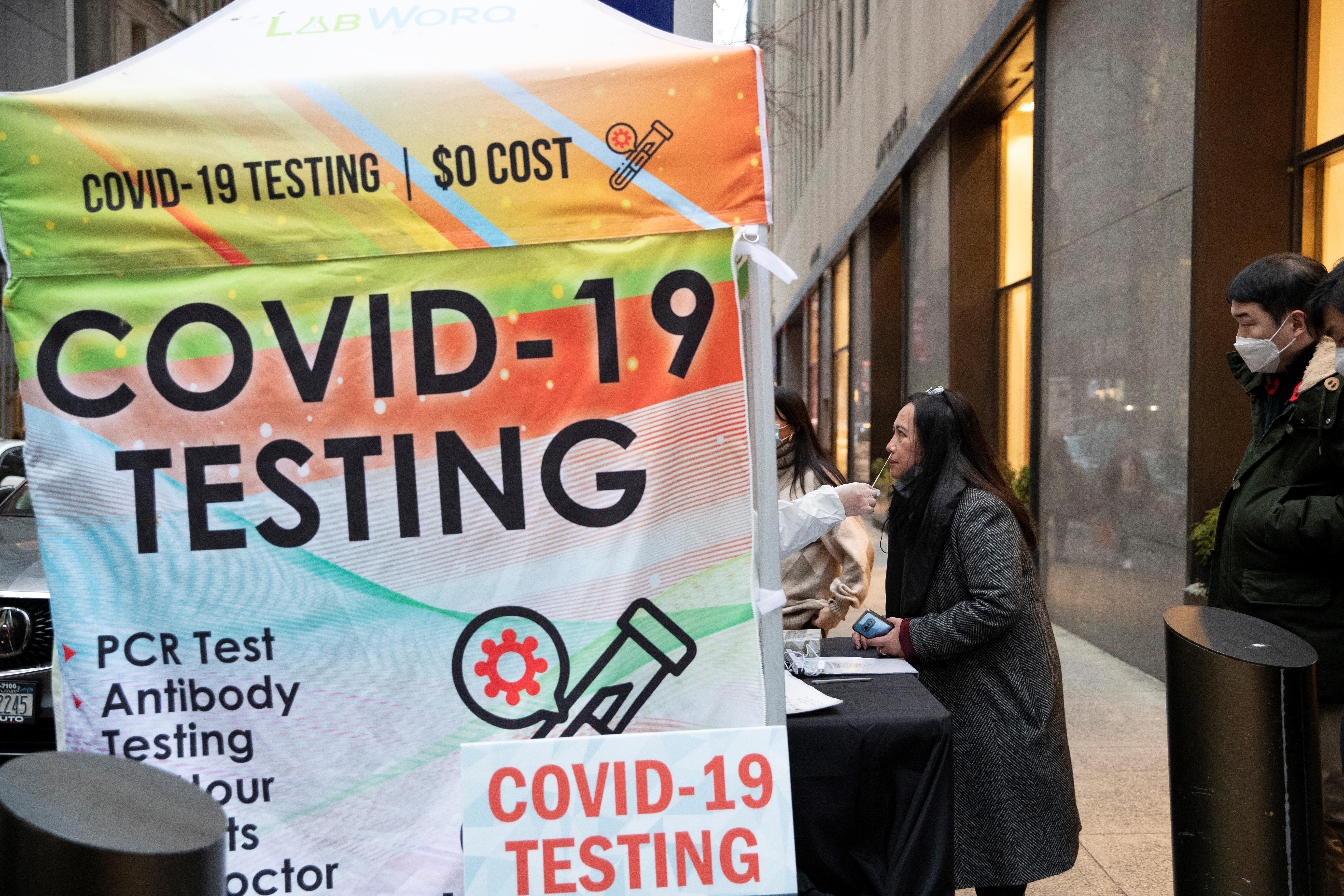 △當地時間12月8日,美國民眾在紐約曼哈頓街頭進行檢測。