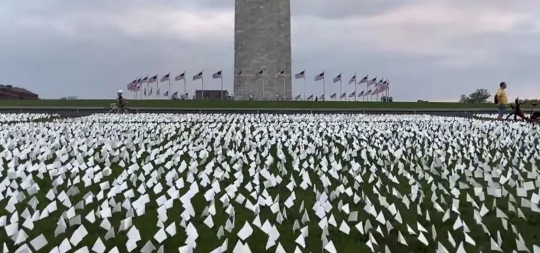 當天,華盛頓多地同時舉行紀念活動,在華盛頓紀念碑下,近70萬面白旗插滿美國國家廣場。