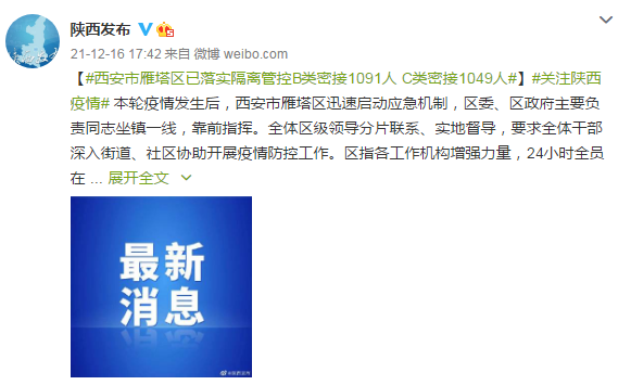 【#西安市雁塔區已落實隔離管控B類密接1091人 C類密接1049人#】#關注陝西疫情# 本輪疫情發生後,西安市雁塔區迅速啓動應急機制,區委、區政府主要負責同志坐鎮一線,靠前指揮。全體區級領導分片聯繫、實地督導,要求全體幹部深入街道、社區協助開展疫情防控工作。區指各工作機構增強力量,24小時全員在崗在位,確保各項工作高效運轉。