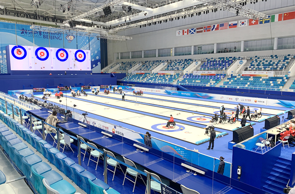 10月23日,“相約北京”2021年世界輪椅冰壺錦標賽在國家游泳中心開賽。人民網記者 胡雪蓉攝