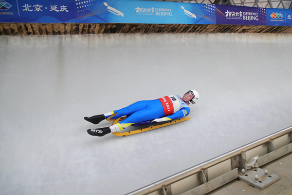 11月19日,選手在“相約北京”2021/2022國際雪橇聯合會雪橇世界盃比賽中。國家雪車雪橇中心供圖
