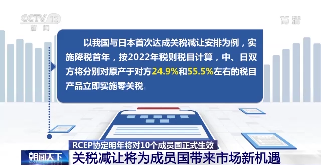 而像我國對澳大利亞、新西蘭,以及東盟國家在RCEP項下的零關税產品税目比例也將分別達到64.7%、65%和66.8%。雖然我國與這些生效成員此前已經有了雙邊關税減讓安排,但在RCEP項下將有部分新增降税產品,二者將形成相互補充、相互促進的關係。像中國出口東盟的摩托車,出口韓國的鹿茸,都會有新的優惠税率,相應地對生產者來説,將會迎來新的市場機遇。