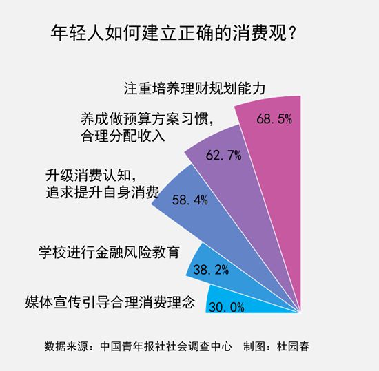 調查中,68.5%的受訪青年提醒要注重培養理財規劃能力,促進合理消費,62.7%的受訪青年認為要養成做預算方案的習慣,合理分配收入,58.4%的受訪青年建議升級消費認知,多追求提升自己的消費,38.2%的受訪青年希望學校對年輕人進行必要的金融風險教育,30.0%的受訪青年認為媒體應積極宣傳合理消費理念,給予正確引導。(記者 杜園春 姚奕鵬)