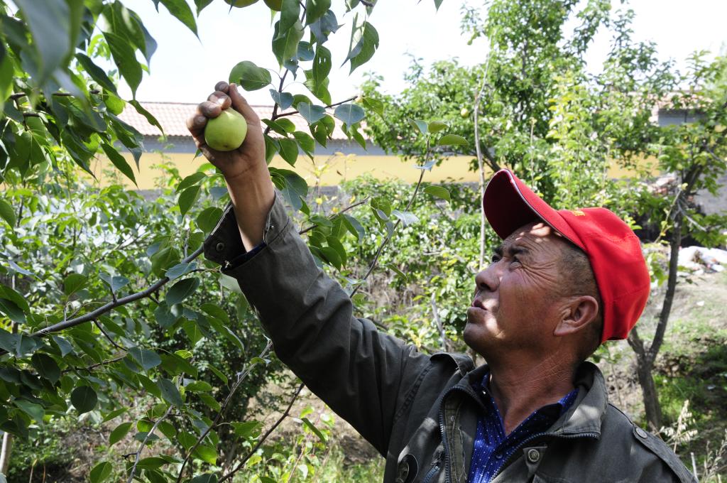 馬洪錄在自家果園摘梨。 新華社記者王浡 攝