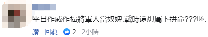 也有網友怒批,“平日作威作福將軍人當奴婢,戰時還想屬下拼命?呸。”