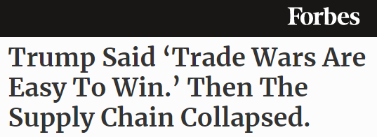 美國《福布斯》雜誌日前指出,本輪供應鏈混亂始於特朗普政府發動貿易戰,這造成嚴重供需波動,特別是美國從中國進口激增。