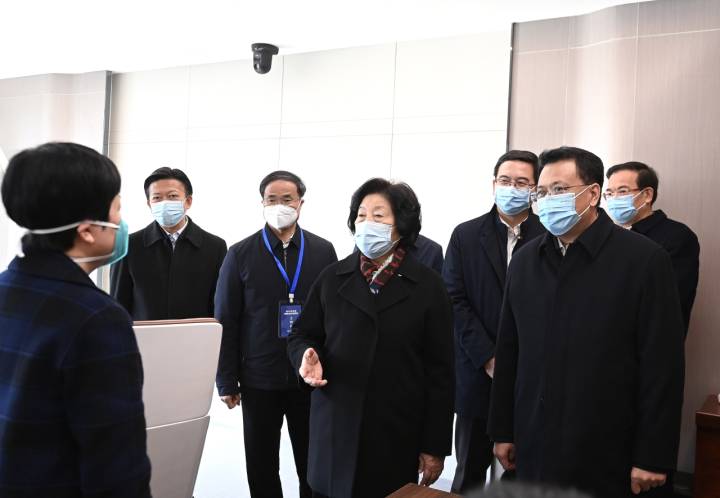12月18日,中共中央政治局委員、國務院副總理孫春蘭考察紹興市上虞區疫情聯防聯控指揮部,瞭解當前指揮部運行和作用發揮等情況。浙江新聞客户端記者 胡元勇 攝