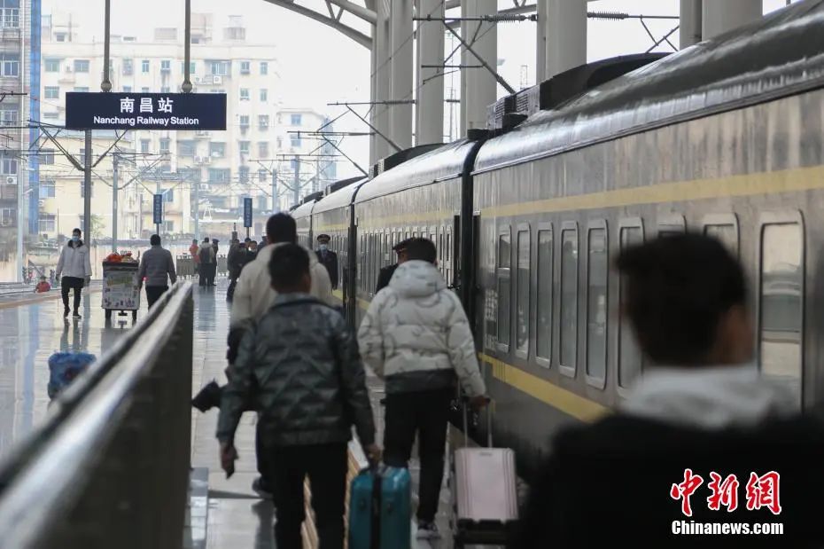 資料圖:江西南昌站,乘客從站台上走過準備上車。劉力鑫 攝