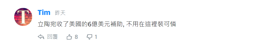 還有網友稱“立陶宛收了美國的6億美元補助,不用在這裏裝可憐”↓