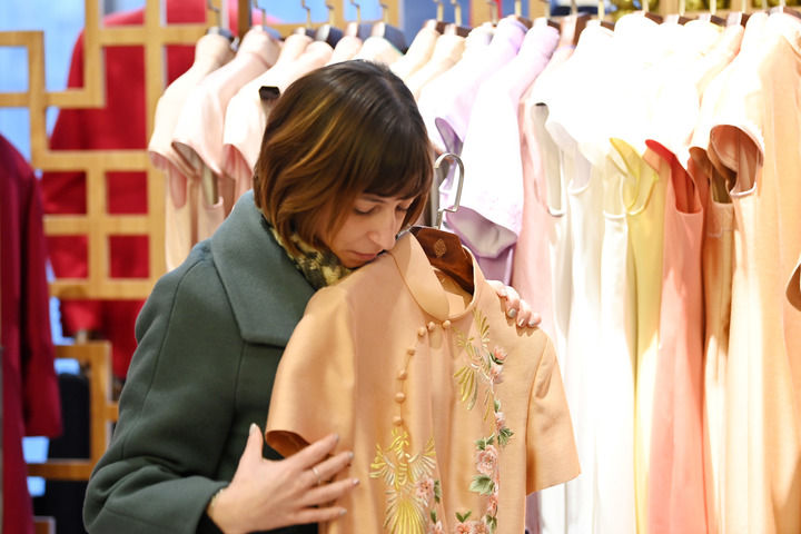 樂小悦在老美華旗艦店內選購旗袍(12月3日攝)。新華每日電訊記者李然攝