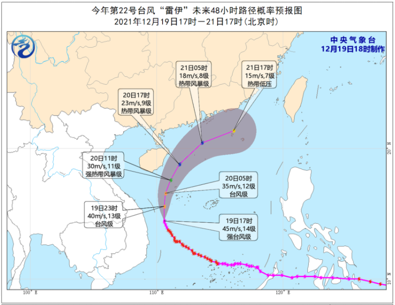 中央氣象台12月19日10時繼續發佈颱風藍色預警