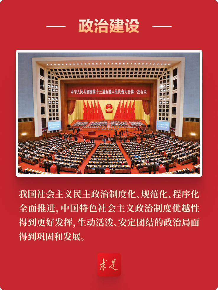 “黨的十八大以來,我國社會主義民主政治制度化、規範化、程序化全面推進,中國特色社會主義政治制度優越性得到更好發揮,生動活潑、安定團結的政治局面得到鞏固和發展。”