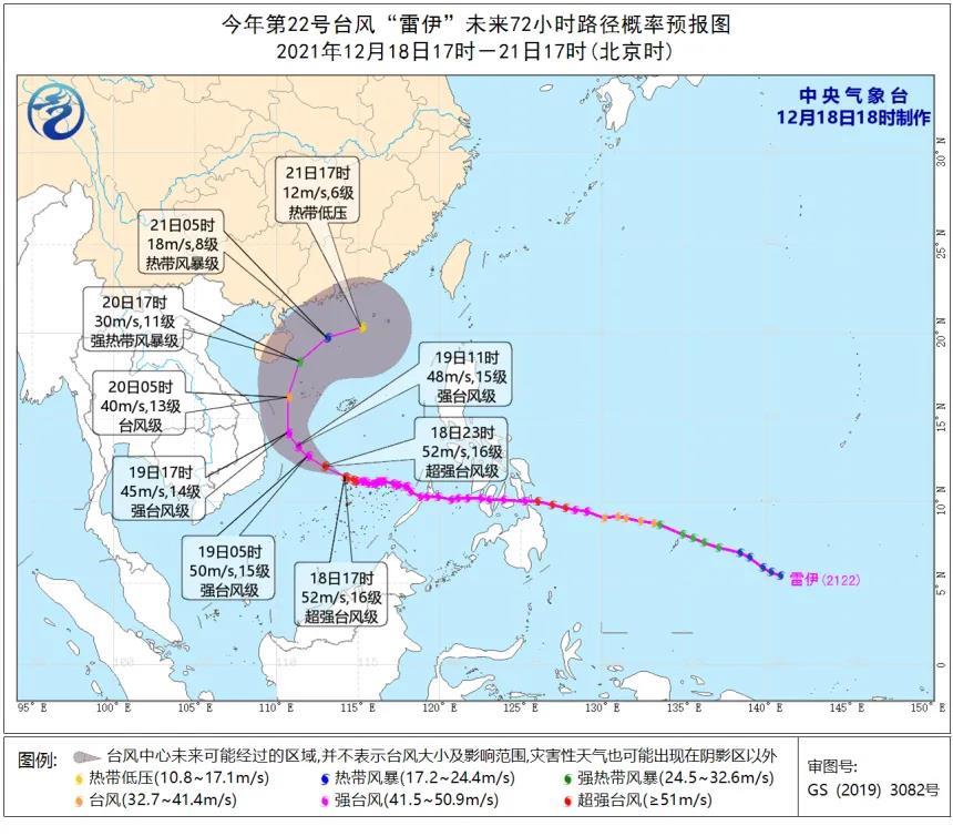 從預報看,18日14時至19日14時,台灣以東洋麪、台灣海峽、巴士海峽、南海大部、南沙羣島、中沙羣島、西沙羣島、黃巖島附近海域、北部灣、瓊州海峽,以及海南島東部和南部沿海、廣東中東部沿海、福建沿海將有7~9級大風,其中南海南部、南沙羣島將有10~12級大風,“雷伊”中心經過的附近海面或島嶼的風力將有13~16級,陣風17級以上。