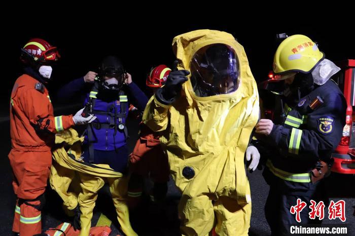 圖為消防指戰員穿着重型防化服。 海西州消防救援支隊供圖
