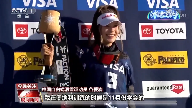 中國自由式滑雪運動員 谷愛凌:我在奧地利訓練的時候是11月份學會的,所以能從三個星期前學會,到現在比賽中(運用),我也是非常高興。這個是歷史上第一次有女子在比賽中完成這個高難度動作。