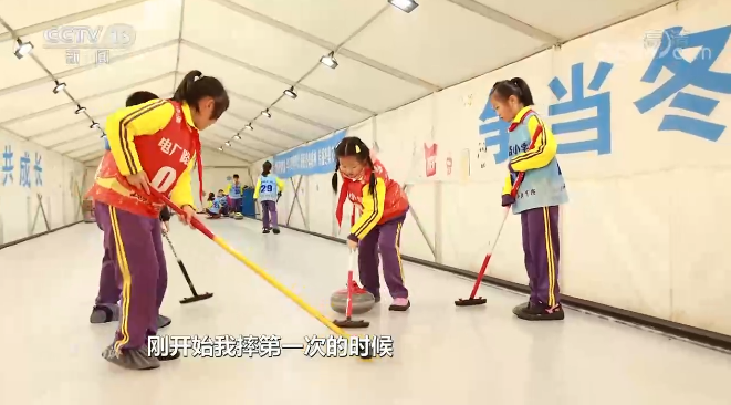 北京市石景山區電廠路小學學生盧佳怡説:“每天早上同學們都會參加各種各樣的體育項目,我參加的是輪滑,這裏還有冰蹴球、雪車、冰球。”