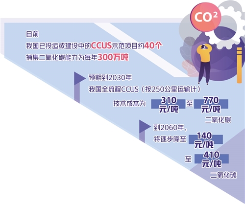“相比國外,我國的CCUS項目起步較晚,而且項目運行成本太高,經濟性不明確。”中國國際工程諮詢有限公司高級工程師張建紅説。有研究測算,不包括運輸和封存成本,國外捕集二氧化碳的成本約為11美元/噸至57美元/噸,而我國當前的低濃度二氧化碳捕集成本為300元/噸至900元/噸。聯合國政府間氣候變化專門委員會的研究報告認為,只有當捕集和封存二氧化碳的總成本降到25美元/噸至30美元/噸時,CCUS技術才可能被大規模推廣。