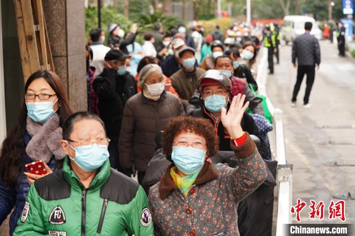 東新園小區居民在“解封”後走出小區。 余文華 攝
