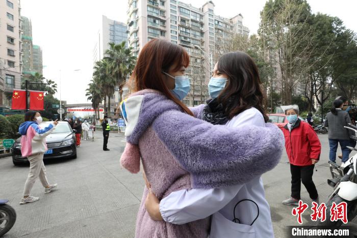 東新園小區居民在“解封”後與親友相擁。 余文華 攝