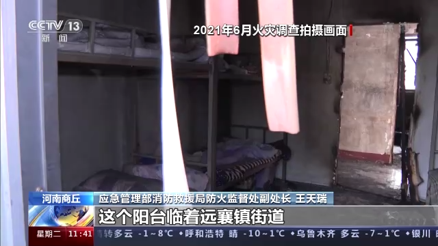 *應急管理部消防救援局防火監督處副處長 王天瑞:*火災發生後,有9個孩子通過這個房間逃到了這個陽台上。這個陽台臨着遠襄鎮街道,(窗户)沒有鐵柵欄,9個孩子先後從這個地方跳樓(逃生)。