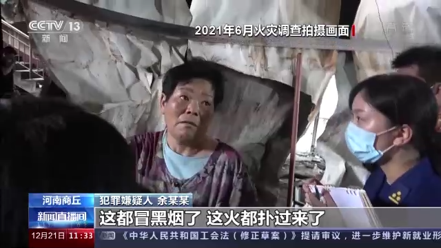 *犯罪嫌疑人 餘某某:*頭上都是汗,把我熱醒了。我一看,我説毀了,這都冒黑煙了,這火都撲過來了。