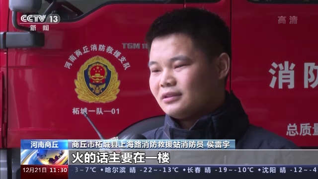 *商丘市柘城縣上海路消防救援站消防員 侯雷宇:*可以看到煙特別大,火的話主要在一樓,二樓的話當時煙就特別大。火光也能看到火光,外面玻璃已經燒碎了,往下掉。