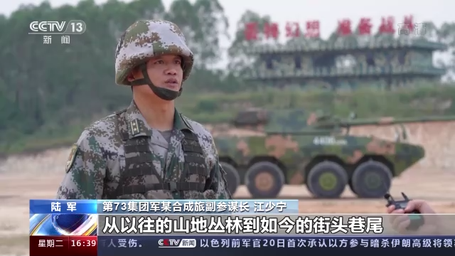 *第73集團軍某合成旅副參謀長 江少寧:*這兩年我們改變傳統的作戰模式,從以往的山地叢林到如今的街頭巷尾,在近似實戰的對抗演練中,重點檢驗合成部隊在城鎮環境下的情報偵察、指揮控制、圍剿打擊等多種實戰技能,有效提升合成部隊的城市作戰能力。