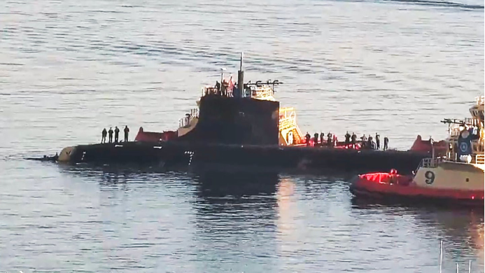 報道稱,一名美國網友于12月19日在社交媒體上發佈了一張疑似“康涅狄格”號核潛艇抵達華盛頓州普吉特灣的基薩普-布雷默頓海軍基地印第安島附近的照片,這裏也是美國海軍3艘海狼級核潛艇的母港。這名網友還分享了船舶跟蹤數據,顯示有兩艘拖船和這艘受損的核潛艇一起航行,還有一艘美國海岸警衞隊的艦船護航。