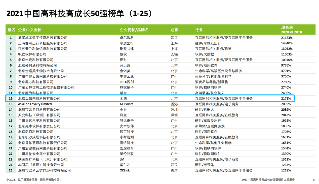 水滴公司榮獲德勤“2021中國高科技高成長50強”