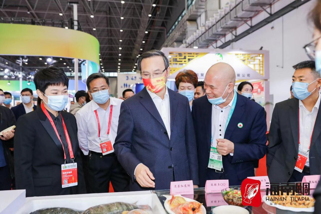 12月16日上午,2021年中國(海南)國際熱帶農產品冬季交易會在海南國際會展中心盛大開幕,省委副書記李軍在省商務廳副廳長李勰的陪同下參觀了海南自貿港出口轉內銷優質水產品展館,重點詢問了“海南鯛”的出口及轉內銷情況,瞭解企業產品研發及生產情況,現場水產企業一一做了介紹。海南省商務廳組織海南省內出口轉內銷優質水產企業以“海南自貿港出口轉內銷優質水產品推廣”為主題加入“冬交會”這個重要平台,通過統一形象展台集中展示海南鯛、金鯧魚、蝦、石斑魚、馬鮫魚等與出口產品同線同質同標的海南優質水產品。