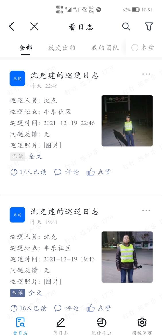 “治安巡防活動是社區組織居民自發參加的,他們通過釘釘居民羣,主動報名參加,2至4人為一組,從晚上七八點一直執勤到次日凌晨。”豐樂社區民兵營長安治東介紹。巡邏人員不放過每一個死角,即時上傳巡邏日誌、圖片。“一旦在巡邏時發現問題,村綜治工作站就會直接線上進行指派,並及時向鎮綜治中心和豐樂派出所進行反饋,小事立即辦,一般事48小時辦結,複雜事項3—5個工作日處置完畢。”