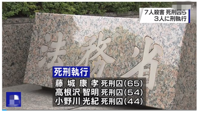 此次被處決的三人分別是:兵庫縣加古川市7人刺殺案中被判死刑的藤城康孝(65歲)、羣馬縣2名彈珠機店店員遇害案中被判死刑的高根澤智明(54歲)和小野川光紀(44歲)。