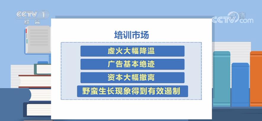 校外培訓治理工作已取得明顯進展。目前線下校外培訓機構已壓減83.8%,線上校外培訓機構已壓減84.1%。留下的培訓機構一部分轉為非營利性機構,實行政府指導價;不適合轉非的將被進一步註銷。培訓市場虛火大幅降温,廣告基本絕跡,資本大幅撤離,野蠻生長現象得到有效遏制。