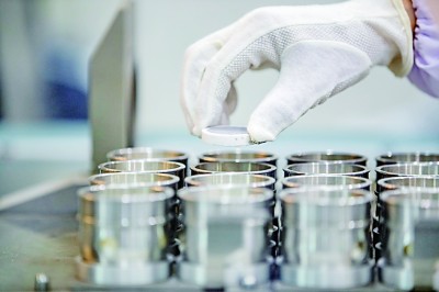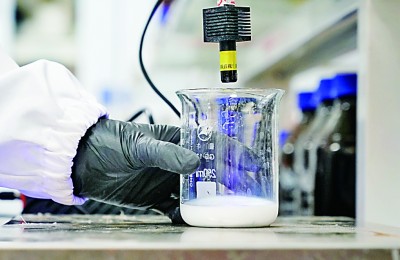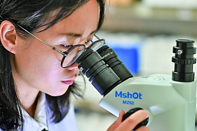 在重慶一家科研創新實驗室內,工作人員在掃描分析樣品中的雜質含量。