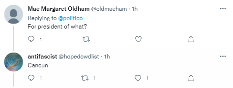 有網友詢問:“(他要競選)哪裏的總統?”“坎昆(那邊的)。”有網友回覆道。↓