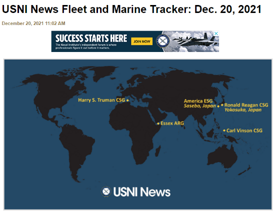 另根據USNI網站“艦隊追蹤”欄目12月20日最新發布的信息顯示,美國海軍“卡爾·文森”號當天已經進入太平洋,其位置大概是在新幾內亞島西北方向的西太平洋上。