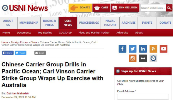 USNI隨後提到,就在中國航母編隊在太平洋活動的同時,美國海軍的“卡爾·文森”號航母戰鬥羣也繼續在西太平洋執行部署任務,該航母戰鬥羣剛剛結束了與澳大利亞皇家海軍和空軍於12月10日至19日在澳大利亞附近的印度洋海域舉行的雙邊聯合演習。