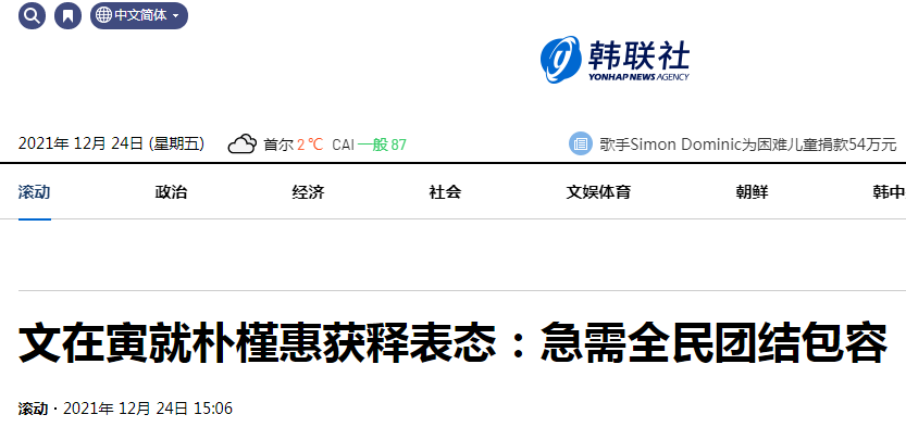 報道還稱,青瓦台相關人士表示,其間宗教界、公民團體、政界等社會各界就朴槿惠赦免問題提出各種意見。文在寅廣泛聽取各界意見,可能深思熟慮直到最後一刻才作出決定。該人士説,青瓦台幕僚之間也沒有就此討論,只向總統轉達了各界意見,但文在寅是否指示或何時指示赦免等具體原委不得而知。